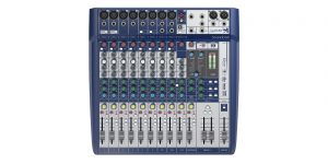 Mesa de mezclas de superficie de 12 canales, 8 con previos de micro Ghost; 1-2 con limitadores dbx; 5-6 con conmutador de alta impedancia; 7/8 y 9/10 Micro o Línea estéreo con filtro pasa altos; alimentación phantom general (48V). 3 bandas de ecualización con frecuencia seleccionable en medios. 11/12 Entradas línea RCA con ecualización de 3 bandas. Faders de 60 mm. 2 Grupos Mono y 1 Estéreo. 3 Auxiliares, todos Pre/Post Fader; Procesador de efectos Lexicon en Aux3 con posibilidad de silenciamiento de efecto por pedal. Salida de grabación USB. Entrada USB con envío a Master o Aux 1-2. Indicadores LED de 10 segmentos. Conectores XLR y jack metálicos.