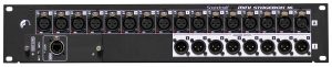 Mini StageBox 16 entradas micro/línea, 8 salidas analógicas. Conexión MADI 1x CAT5 intercambiable. 2 U. Enracable 19″.